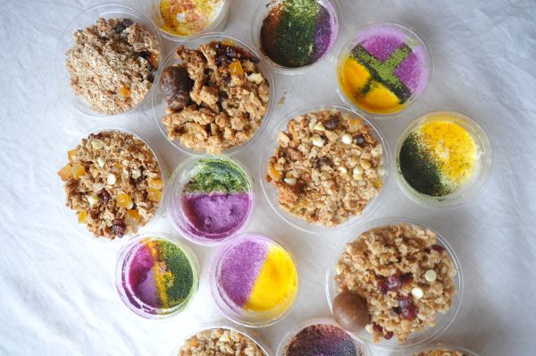 彩り野菜のコールスロー/アボカドサンド/エルヴィスサンド/エッグスラット/大豆のファラフェル/ブッダボウル ファラフェルを添えて/チキンブレスト ハラペーニョソース、ハリッサ、ハーブ塩を添えて/グルテンフリーのベリーの米粉コブラー