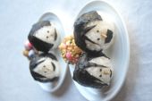 白身魚のスパイス揚げ/かご盛り手まりおにぎり3種/いちごとカステラの和トライフル