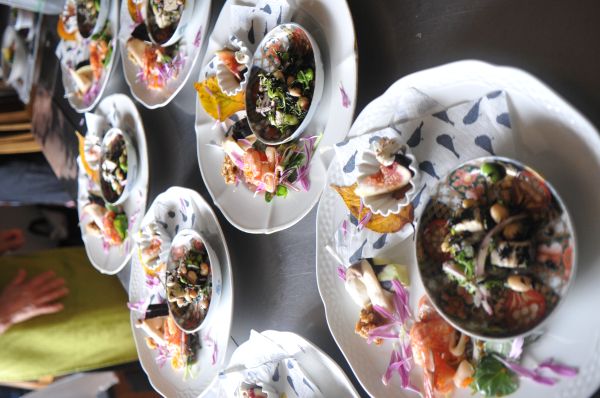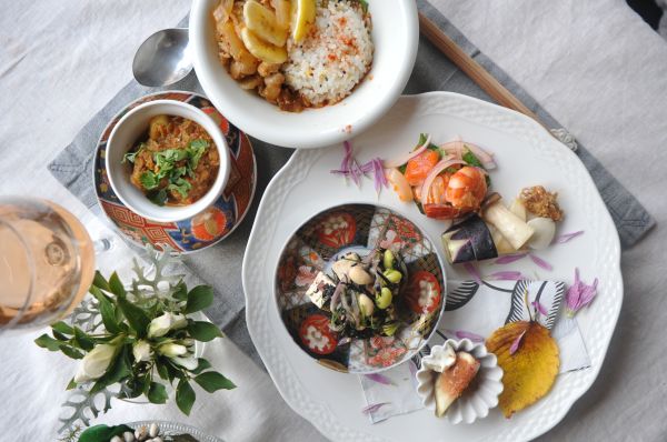 薬味とハーブのちらしずし/鶏肉と夏野菜のモロッコ煮/トマトとマンゴーのガスパチョ