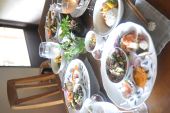 いちごの軽やかなマリネ/プルーンの赤ワインスパイス煮/京にんじんとビーツ、クランベリーのラぺ/カリフラワーのカレーマリネ/クロックムッシュタルト/リーフ野菜のサラダ/カスレ/カヌレ
